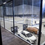 O Design Center conta ainda com o Showroom, onde ocorrem as apresentações das várias fases dos projetos em desenvolvimento, até à aprovação final. A iluminação difusa valoriza a forma e cores dos modelos.