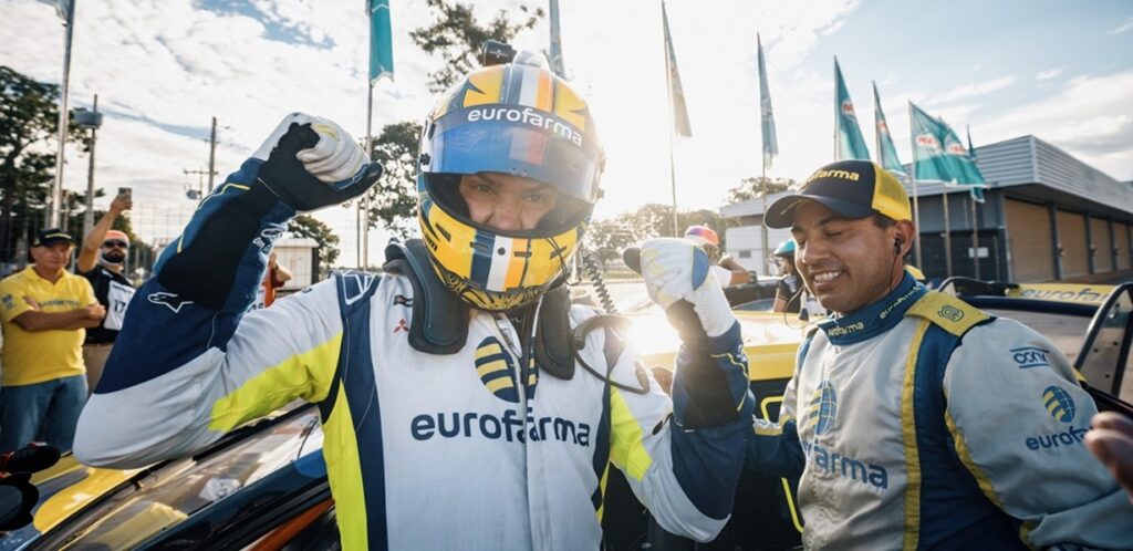 Enzo Elias comemorando a vitória na primeira corrida Sprint do ano – Foto: Marcelo Machado de Melo/ Vicar
