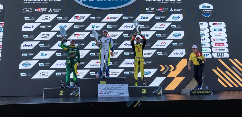 Neste domingo (8), a cidade de Curvelo recebeu a etapa de abertura da temporada 2026 da BRB Stock Car Pro Series. Após a vitória de Enzo Elias, na corrida sprint do sábado, Felipe Fraga venceu a prova principal e assumiu a liderança do campeonato. Julio Campos e Gabriel Casagrande completaram o pódio.