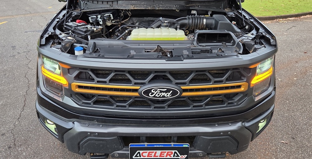 Abertura da tampa traseira com Pro-Access, abertura elétrica da porta da caçamba, acesso ao veículo iluminado, BoxLink com (4) travas na caçamba, engate para reboque com conector de 4 pinos, estribos laterais fixos, faróis de neblina em LED, faróis dianteiros em LED, faróis traseiros em LED, ganchos de reboque dianteiro, iluminação externa 360°, iluminação na caçamba, pontos e ganchos de fixação na caçamba, projetores LED dinâmicos, protetor de caçamba Spray-In, ajuste elétrico de altura e profundidade do volante, ajuste elétrico de pedais com memória, ar-condicionado para a segunda fileira de bancos, banco do motorista com ajuste elétrico de 10 posições com memória, banco do passageiro com ajuste elétrico de 8 posições, bancos dianteiros aquecidos/ventilados, bancos traseiros aquecidos, compartimento com trava sob o banco traseiro, para-brisa acústico, tapetes de Borracha, teto solar panorâmico, oito air bags (dianteiros, laterais, cortinas e joelhos), acendimento automático dos faróis, alerta de colisão frontal, alerta de permanência em faixa, assistente Autônomo de frenagem (com detecção de pedestres), assistente de manobras evasivas, assistente de partida em rampas, assistente em cruzamentos com sistema de frenagem autônoma, câmera de ré com detecção de objetos e assistente de engate, controle automático em descidas, controle de oscilação de reboque, controle eletrônico anti-capotamento, controles eletrônicos de estabilidade e tração, farol alto automático, ISOFIX – Ganchos de fixação de cadeiras de crianças, luzes de condução diurna, controle automático de velocidade adaptativo com Stop & Go, sensores de estacionamento dianteiro e traseiro, monitoramento da pressão dos pneus, sistema de assistência de frenagem, sistema de assistência em curvas, sistema de monitoramento de ponto cego com (BLIS) cobertura de reboque, sistema de permanência e centralização em faixa, travamento Elétrico da Caçamba, ar-condicionado automático digital de duas zonas, câmera 360°, câmeras frontal, traseira e engate, carregador de celular por indução, controle de freio para reboque, Head-up Display, painel de Instrumentos digital de 12 polegadas, Pro Trailer assistente de reboque, sensor de chuva, tomadas 110v (1) frontal, (1) banco taseiros e (1) caçamba; tomadas de 12V (1) frontal e (1) banco traseiros, sistema Multimídia SYNC 4, comandos de áudio e voz no volante, conectividade Android Auto e Apple Car Play sem fio, entradas USB tipo A e tipo C, sistema de som premium com 14 Alto-falantes feito por Bang & Olufsen HD Radio, FordPass Connect: Conectividade via aplicativo FordPass, alerta de acionamento do alarme no celular, alertas de funcionamento do veículo, partida remota agendada, partida remota com acionamento do ar-condicionado, sistema de localização do veículo no celular e status remoto do veículo (nível do combustível, hodômetro).
