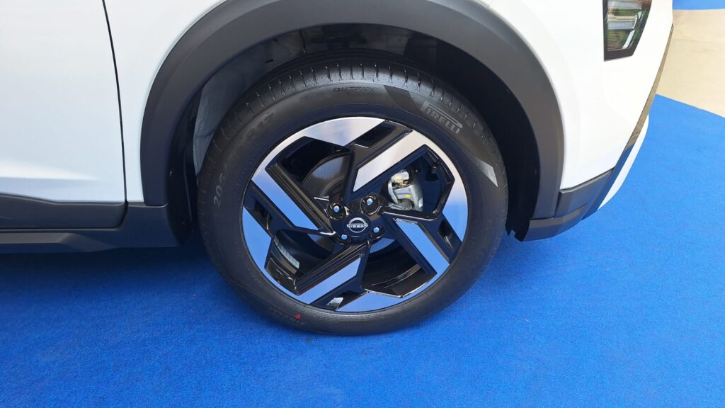 Um detalhe curioso no Nissan Kait é a tampa do porta-malas ressaltada, inspirada no Nissan Patrol, um dos utilitários mais tradicionais da marca no exterior. Todos os acabamentos contam com rodas aro 17, e as versões mais caras ganham desenho esportivo com efeito de “lâminas”.