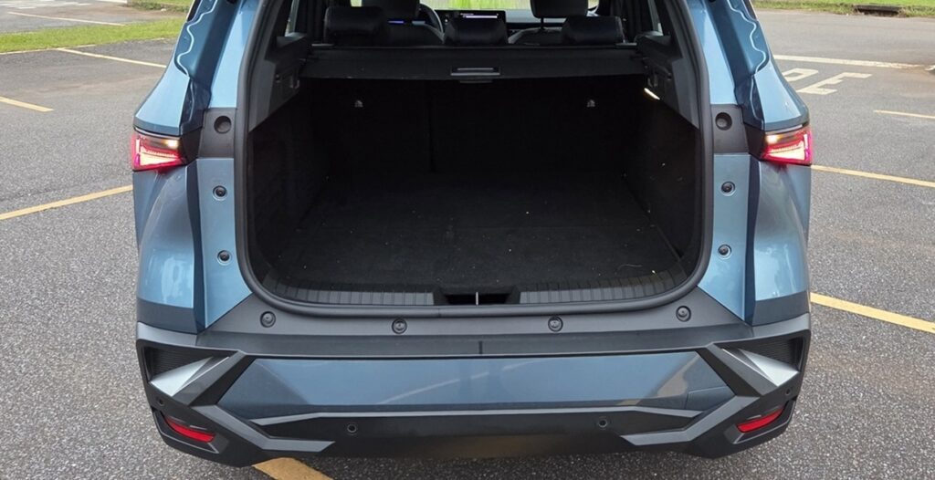 O banco traseiro acomoda bem adultos e conta com saídas de ar-condicionado e portas USB, reforçando o conforto para quem viaja atrás. Já o porta-malas oferece 522 litros de capacidade, número competitivo entre os SUVs médios.