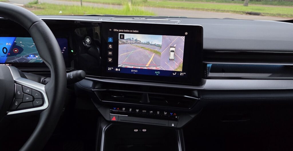 O ambiente tecnológico é dominado por duas telas de 10 polegadas: uma para o quadro de instrumentos digital e outra para o sistema multimídia. O software traz Google integrado, permitindo navegação nativa, download de aplicativos e comandos por voz sem depender necessariamente do celular.