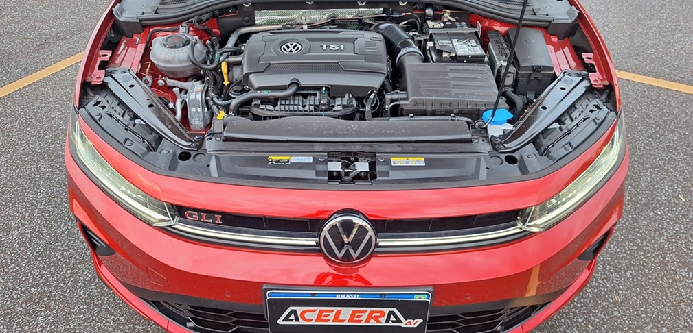 Debaixo do capô segue o conhecido 2.0 com turbo e injeção direta, que rende 231cv e 35,7kgfm de torque, sempre aliado ao DSG de sete marchas. É um conjunto amplamente conhecido — e isso é elogio. Maduro, confiável e com enorme respaldo no mercado de preparação.