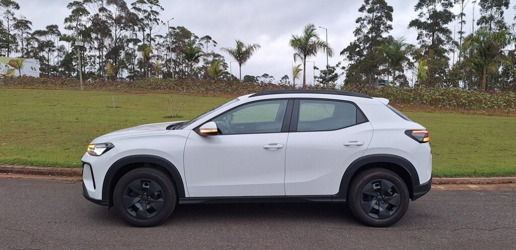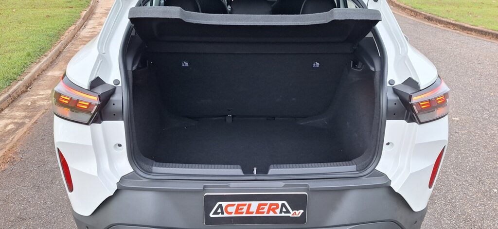 Já o conjunto estético da traseira traz lanternas interligadas por uma faixa escura — detalhe que reforça a tentativa de deixá-lo com aparência de um SUV maior.