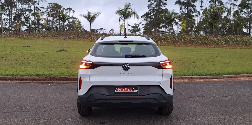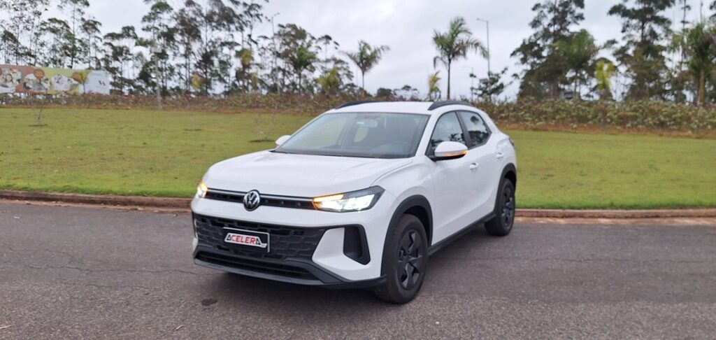Por fora, o VW Tera 1.0 TSI tem proporções equilibradas e um desenho moderno, que foge da mera aparência de um Polo “suspenso”. A dianteira segue a identidade visual da nova geração de compactos da VW, com faróis de LED e grade elevada.]